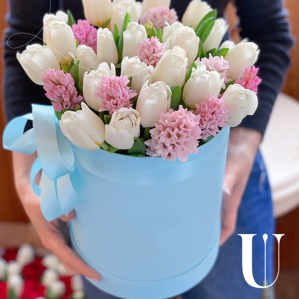 - Шляпная коробка, голубая (выс. 30 см, диам. 25 см) - 1 шт