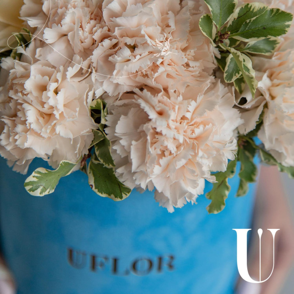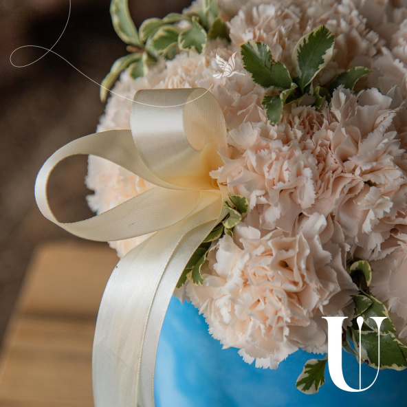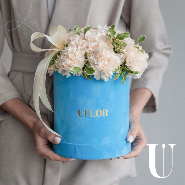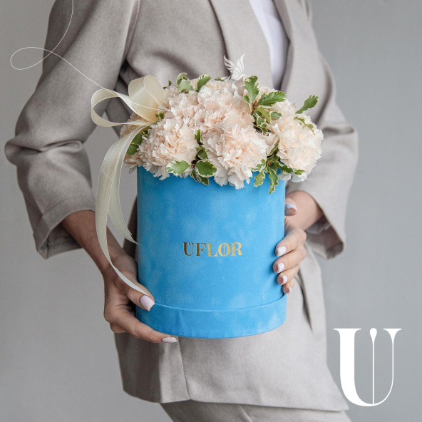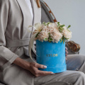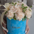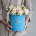 - Шляпная коробка бархатная (U), голубая (выс. 18 см, диам. 16 см) - 1 шт