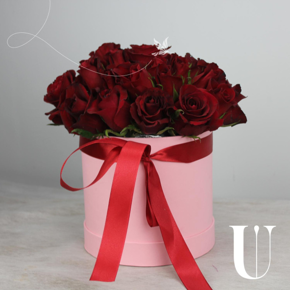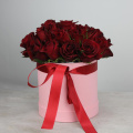 Композиция из роз, диантуса и лизиантуса в шляпной коробке