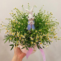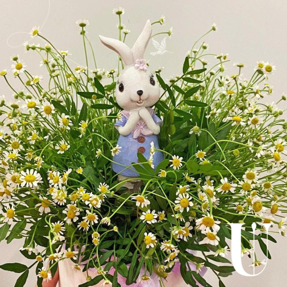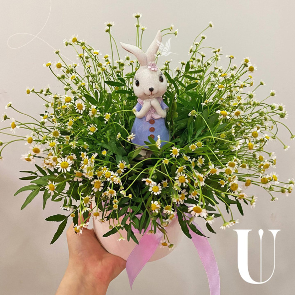 Танацетум - 5шт, коробка 13*12см, керамическая зайка, зелень