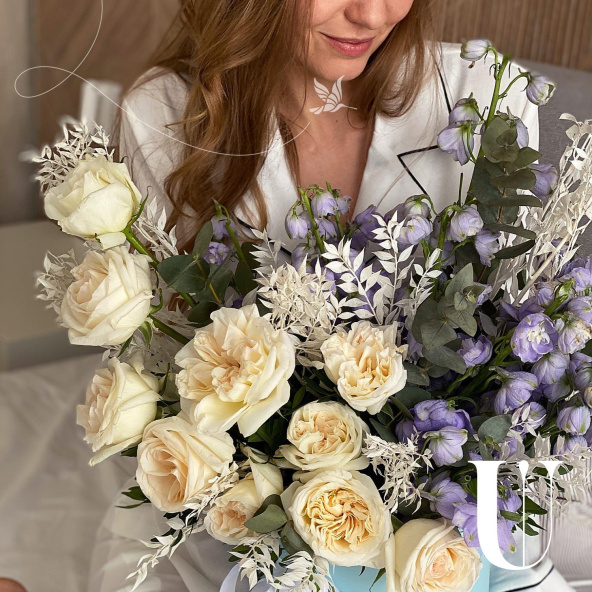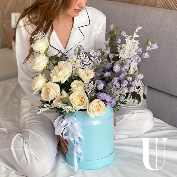 - Шляпная коробка, голубая (выс. 30 см, диам. 25 см) - 1 шт