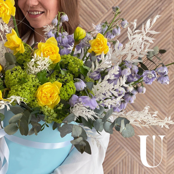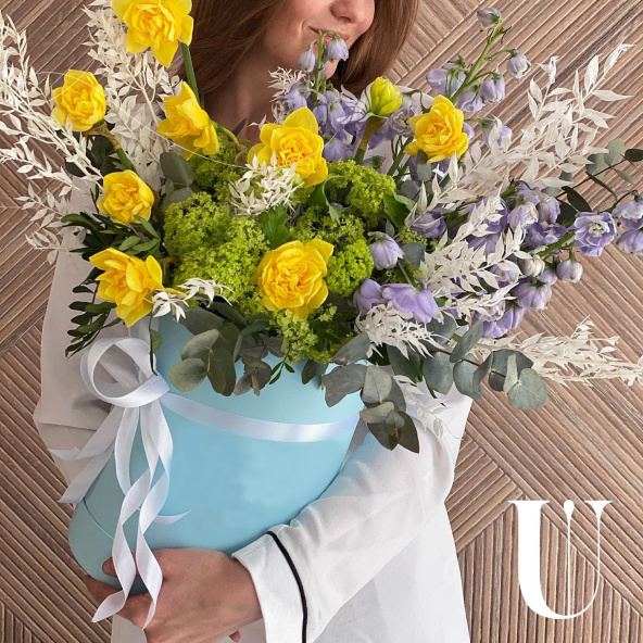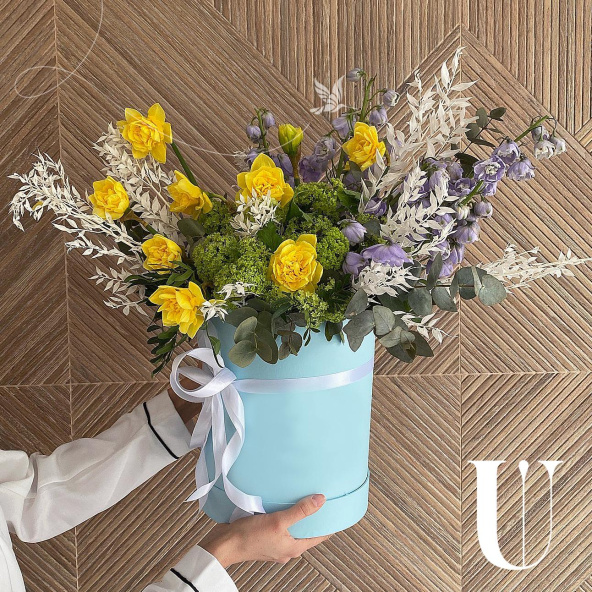 - Шляпная коробка, голубая (выс. 30 см, диам. 25 см) - 1 шт