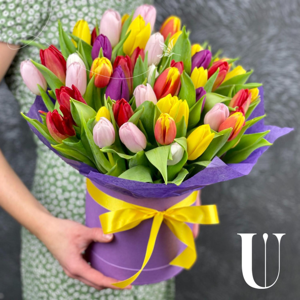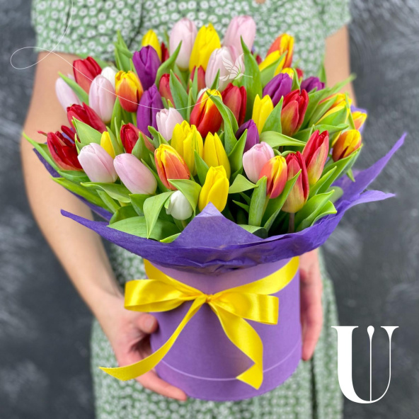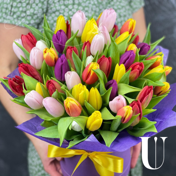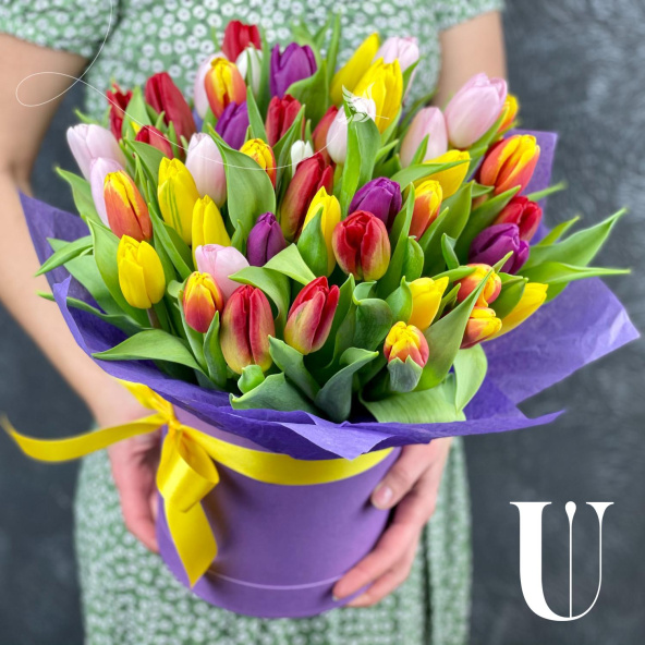 Цветы в коробке "51 микс тюльпанов в коробке"