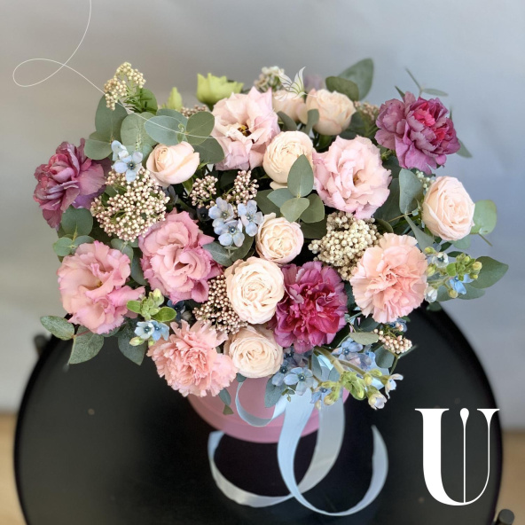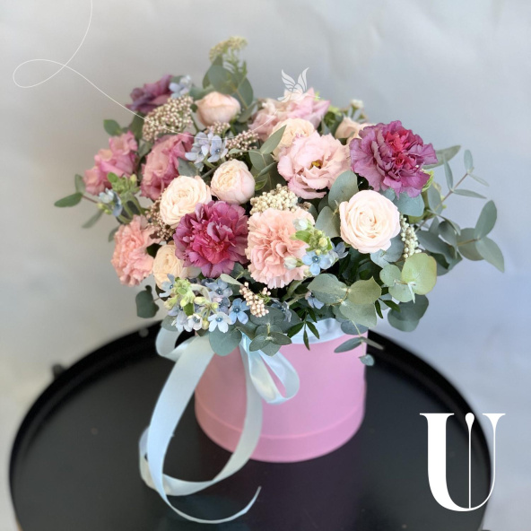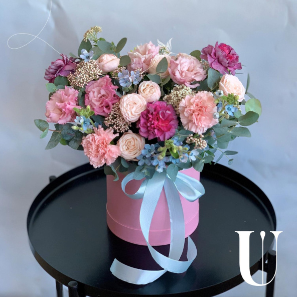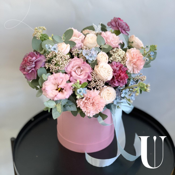 - Шляпная коробка бархатная, нежно-розовая (выс.16 см, диам.16 см) - 1 шт