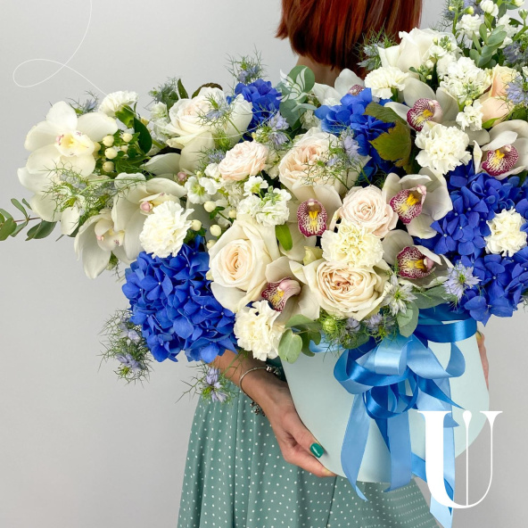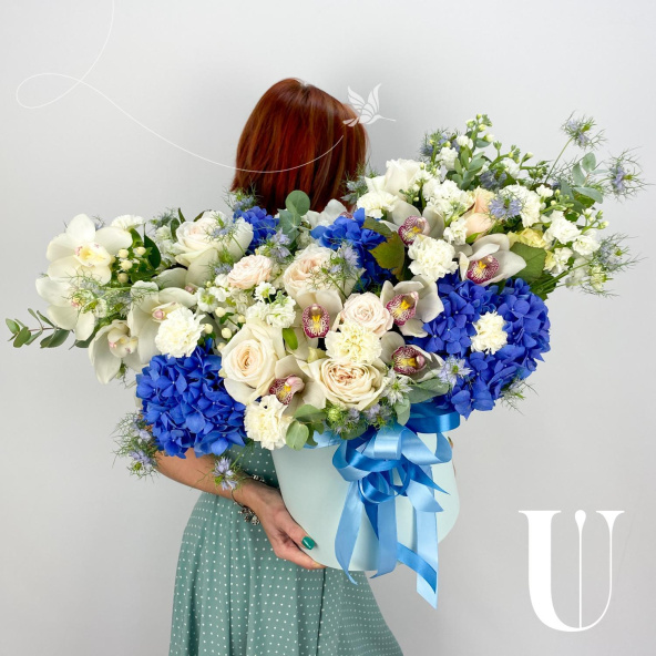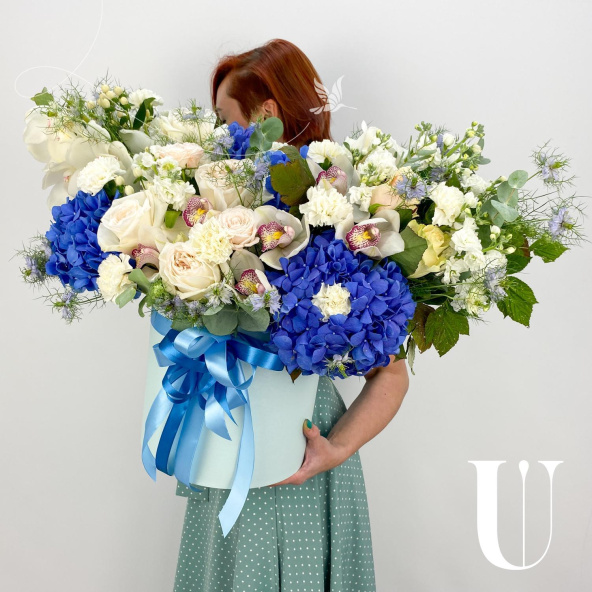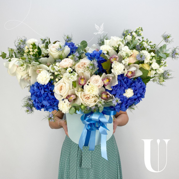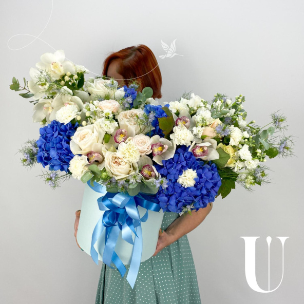 - Шляпная коробка маджестик (U), светло-голубая (выс. 25 см, диам. 20 см) - 1 шт
