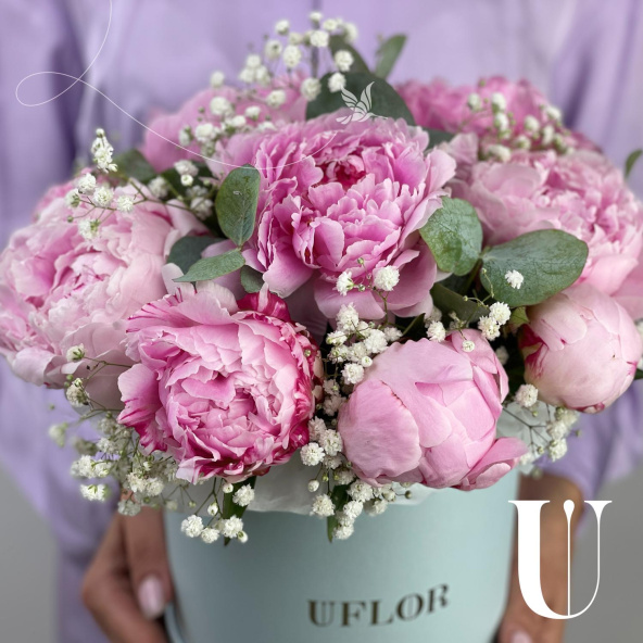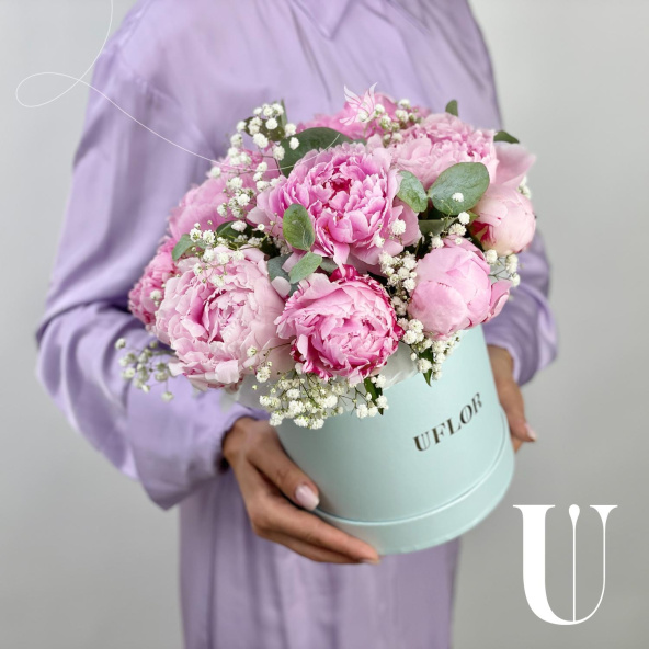 - Шляпная коробка маджестик (U), светло-голубая (выс. 18 см, диам. 16 см) - 1 шт