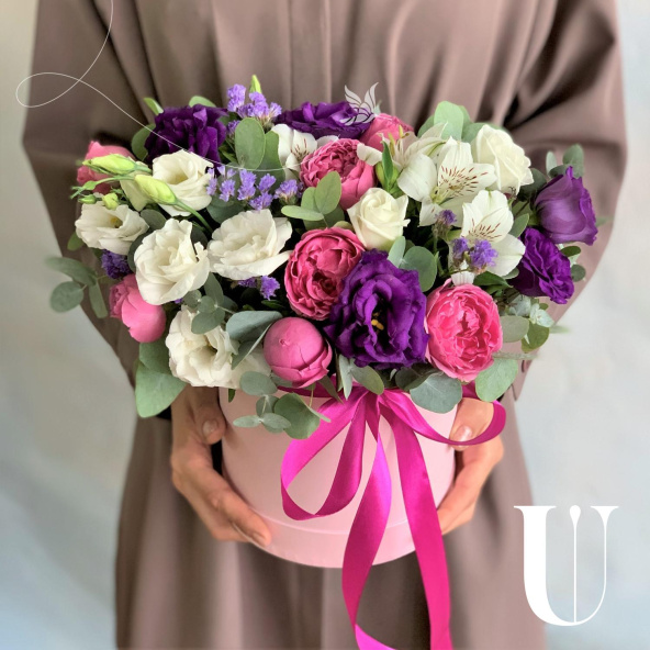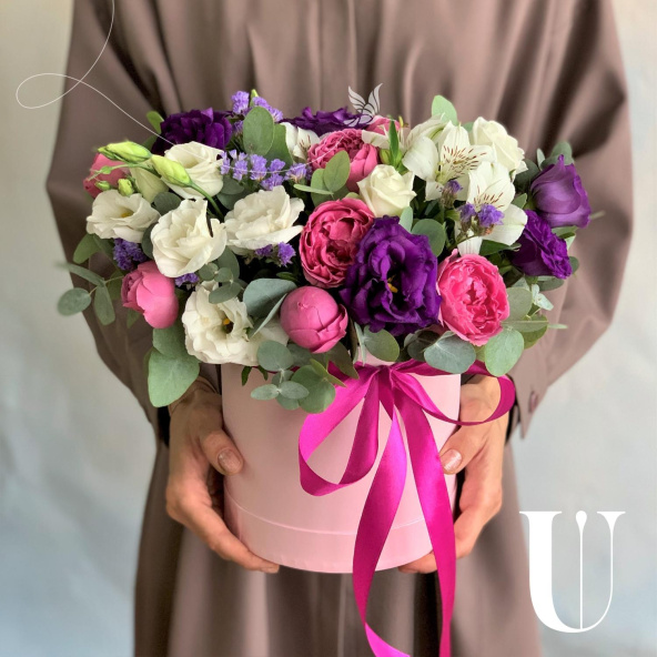 - Шляпная коробка, нежно-розовая (выс. 17 см, диам. 14 см) - 1 шт
