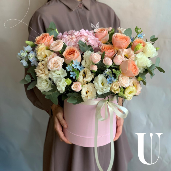 - Шляпная коробка нежно-розовая (выс. 25 см, диам. 20 см) - 1 шт