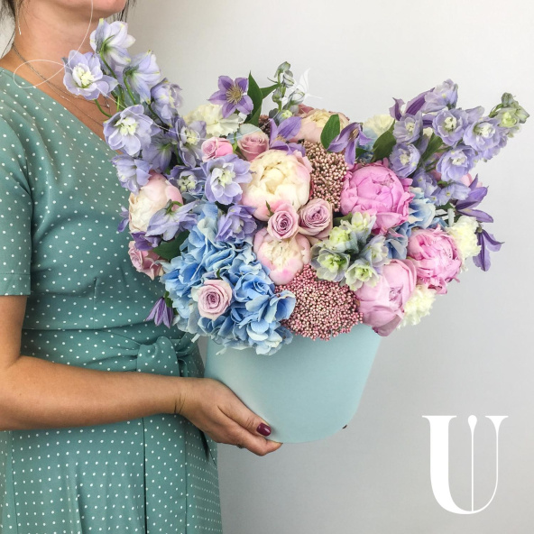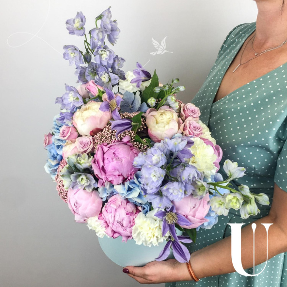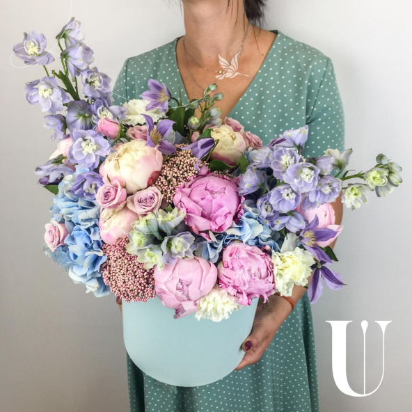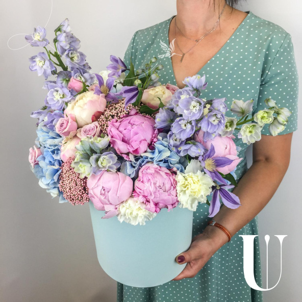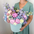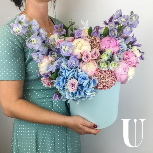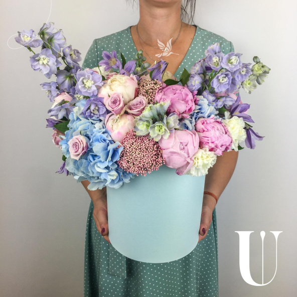 - Шляпная коробка маджестик (U), светло-голубая (выс. 25 см, диам. 20 см) - 1 шт