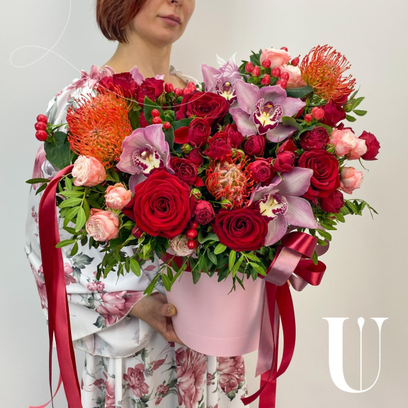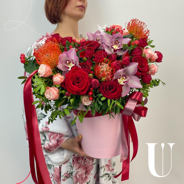 - Шляпная коробка маджестик (U), светло-розовая (выс. 25 см, диам. 20 см) - 1 шт