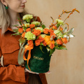 - Шляпная коробка бархатная (U), тёмно-зеленая (выс. 18 см, диам. 16 см) - 1 шт