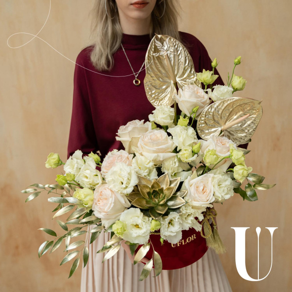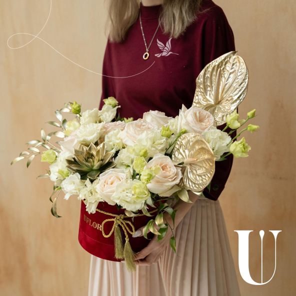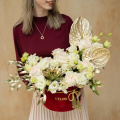 - Шляпная коробка бархатная, красная (выс. 15 см, диам. 30 см) - 1 шт