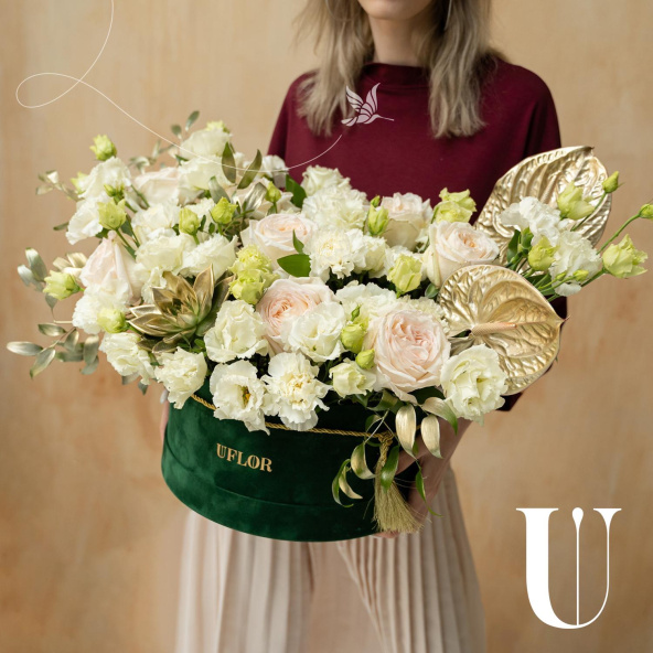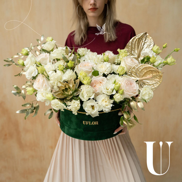 - Шляпная коробка бархатная (U), тёмно-зеленая (выс. 15 см, диам. 30 см) - 1 шт