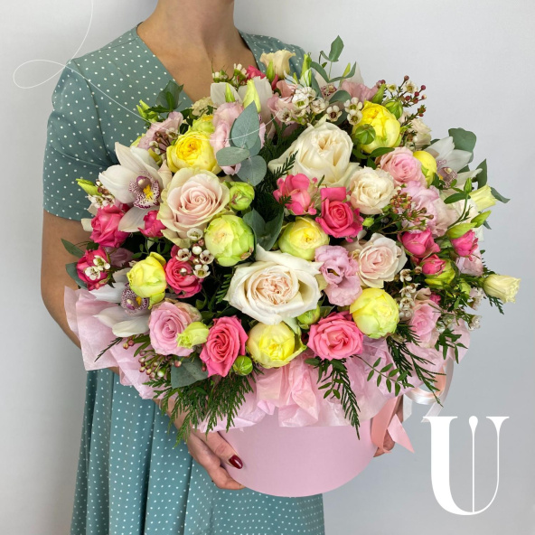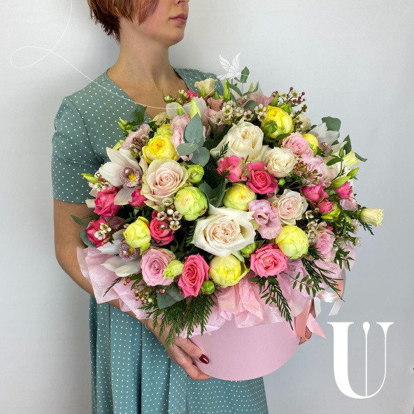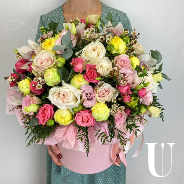 - Шляпная коробка маджестик (U), светло-розовая (выс. 27 см, диам. 25 см) - 1 шт