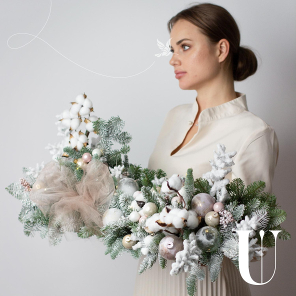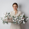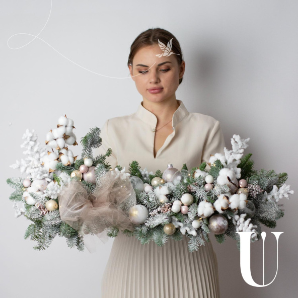 55 белых роз Аваланж в темно-зеленой шляпной коробке