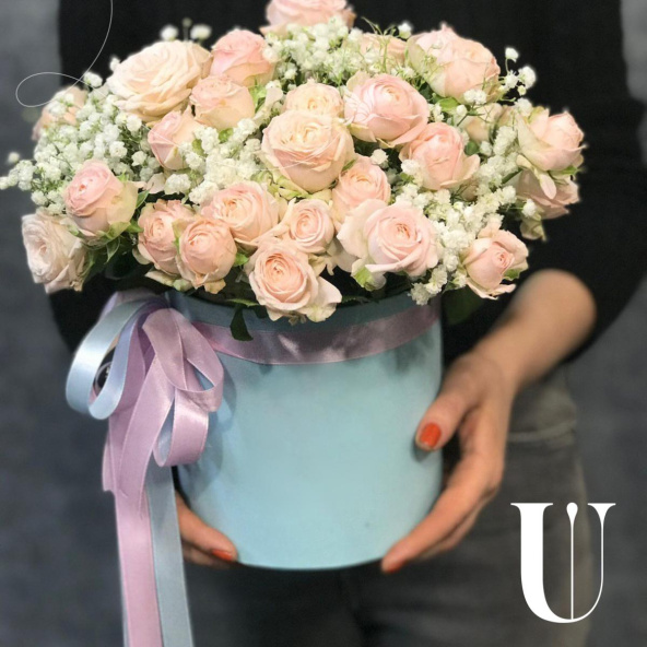 Нежная, утонченная композиция из кустовой розы приятно порадует получателей