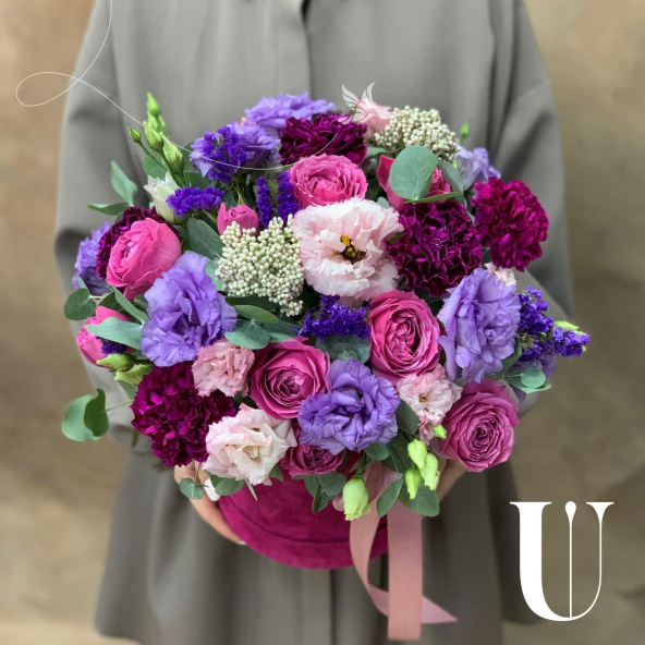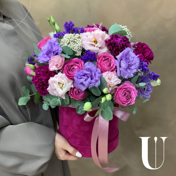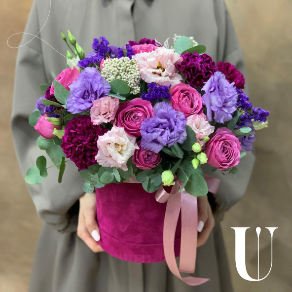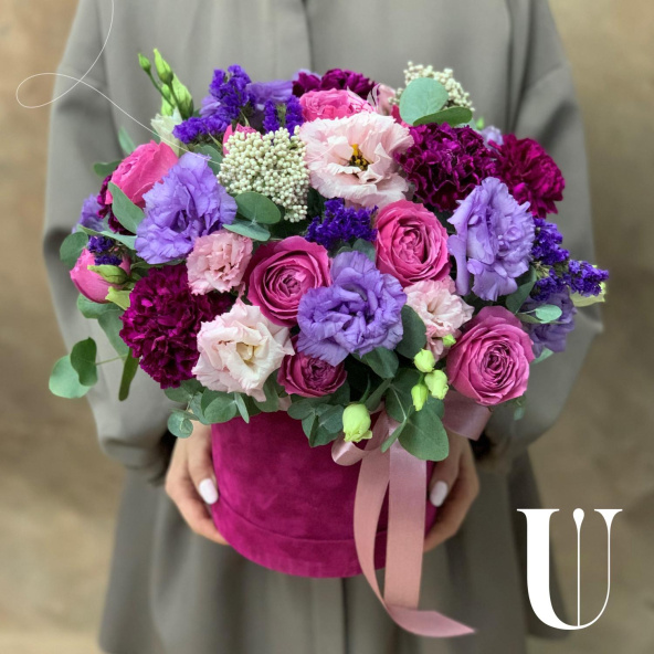 - Шляпная коробка бархатная, малиновая (выс.16 см, диам.16 см) - 1 шт