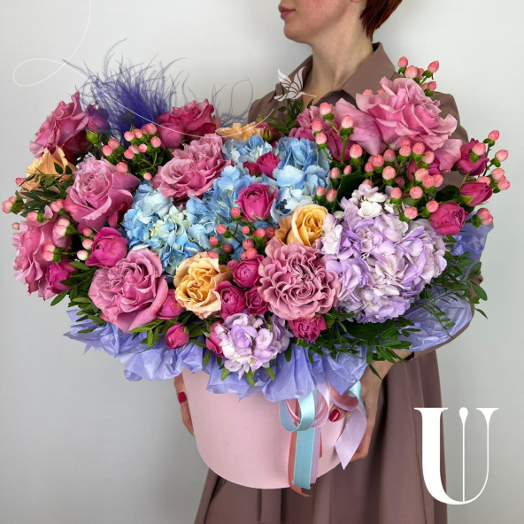 - Шляпная коробка маджестик (U), светло-розовая (выс. 25 см, диам. 20 см) - 1 шт