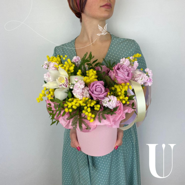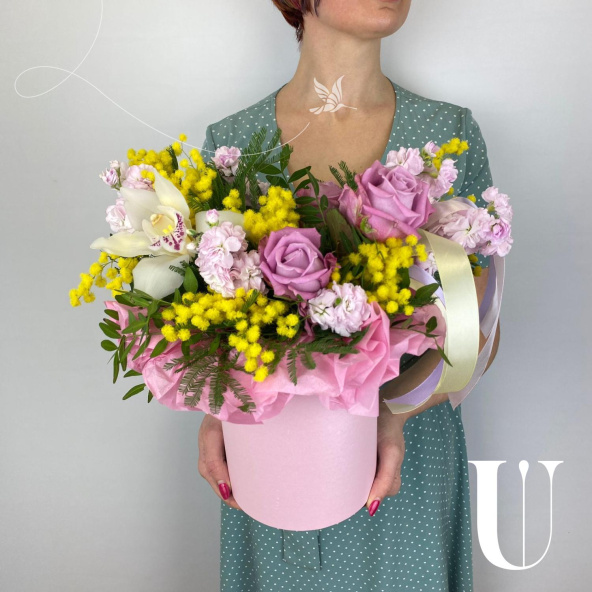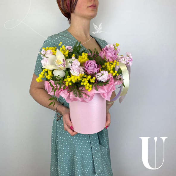 - Шляпная коробка маджестик, розовая (выс. 20 см, диам. 15 см) - 1 шт