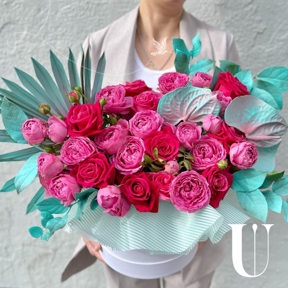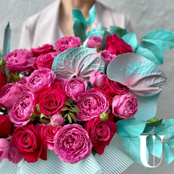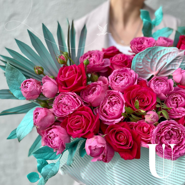 - Роза кустовая пионовидная, Мисти Бабблз, малиновая, 40 см. - 9 шт