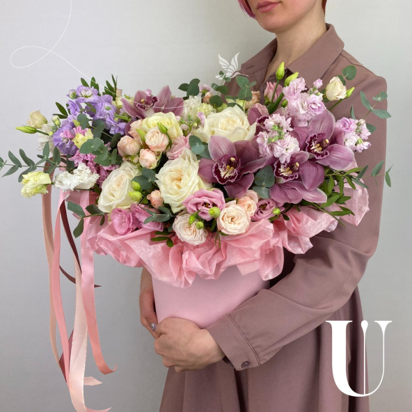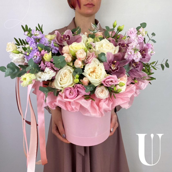 - Шляпная коробка маджестик (U), светло-розовая (выс. 25 см, диам. 20 см) - 1 шт
