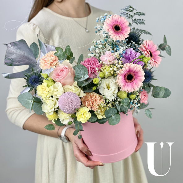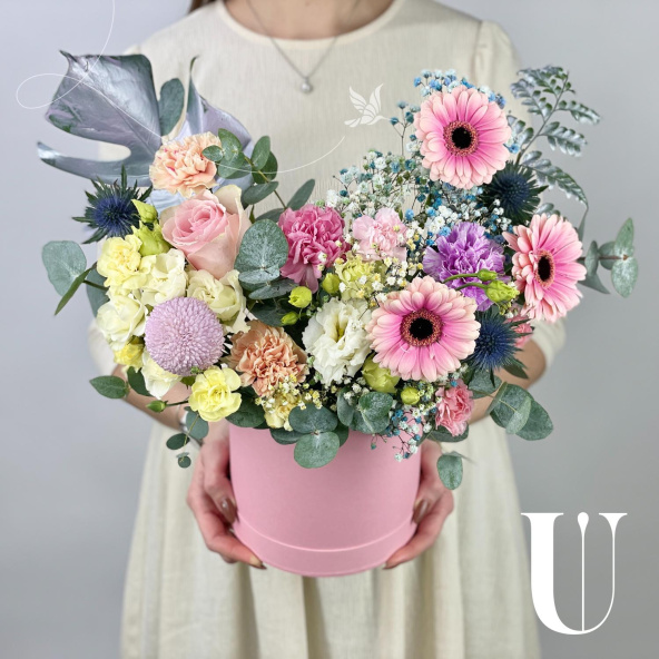 - Шляпная коробка розовая (выс. 16 см, диам. 16 см) - 1 шт