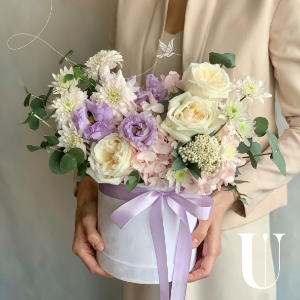 - Шляпная коробка бархатная,серая (выс. 16 см, диам. 16 см) - 1 шт