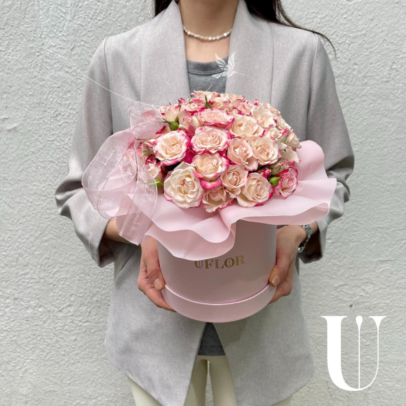 - Шляпная коробка маджестик (U), светло-розовая (выс. 18 см, диам. 16 см) - 1 шт