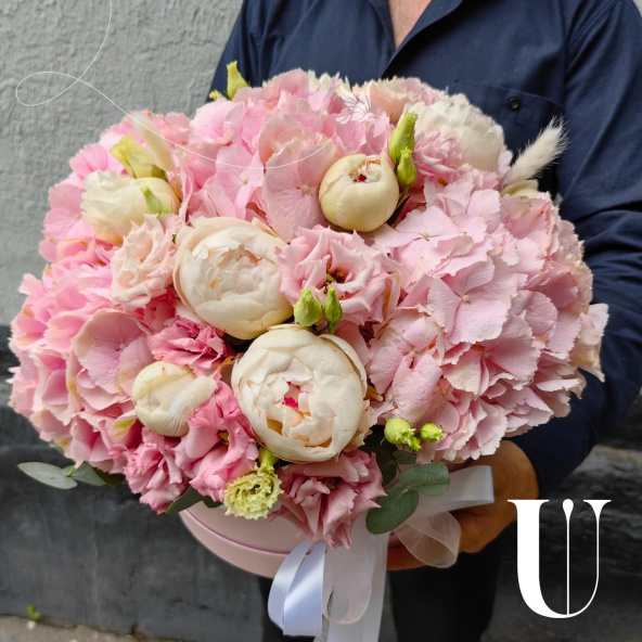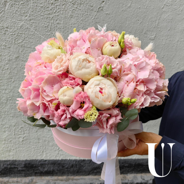 - Шляпная коробка маджестик (U), светло-розовая (выс. 15 см, диам. 30 см) - 1 шт
