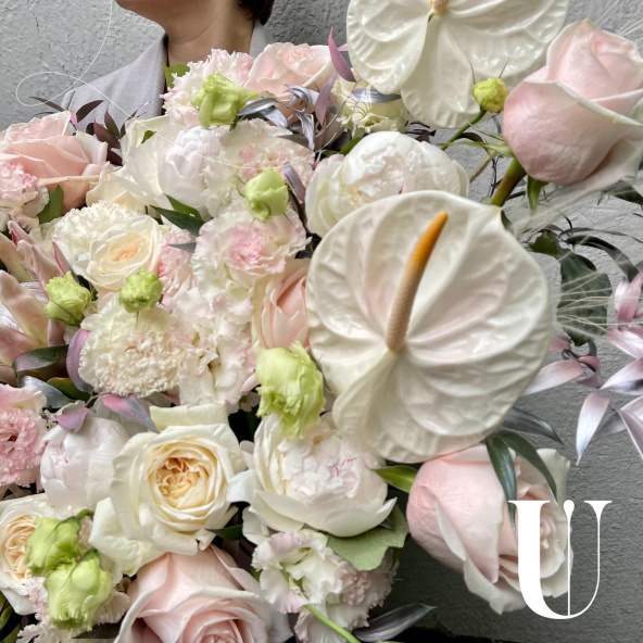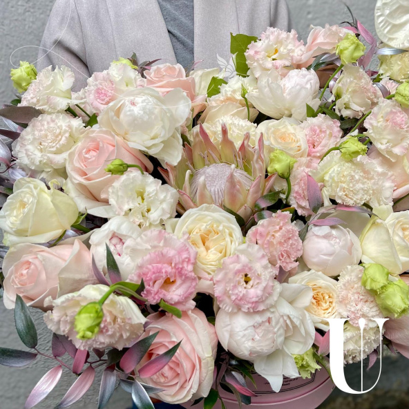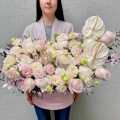 - Роза Вайт Охара, Эквадор, бело-розовая, пионовидная 50 см. - 10 шт