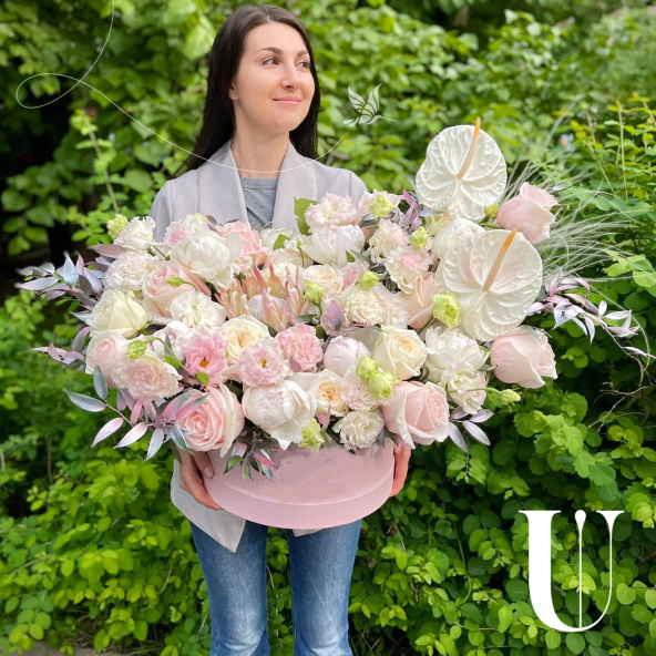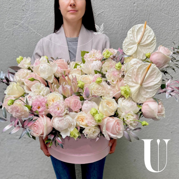 - Шляпная коробка маджестик (U), светло-розовая (выс. 15 см, диам. 30 см) - 1 шт