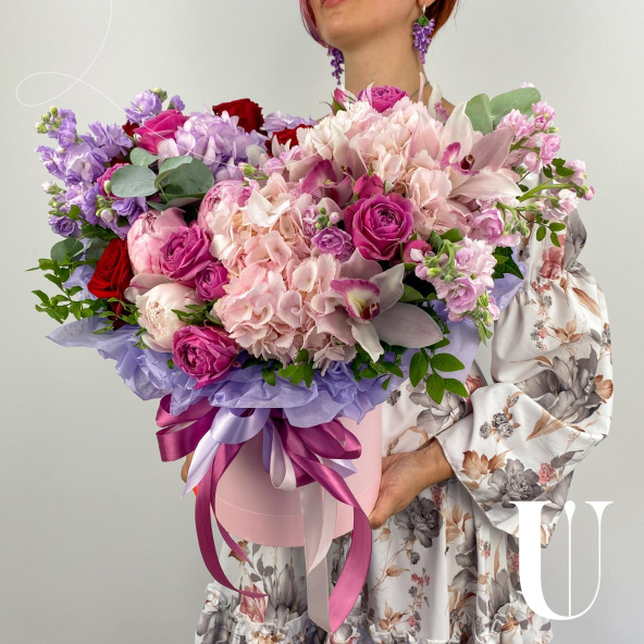 - Шляпная коробка маджестик, розовая (выс. 25 см, диам. 20 см) - 1 шт