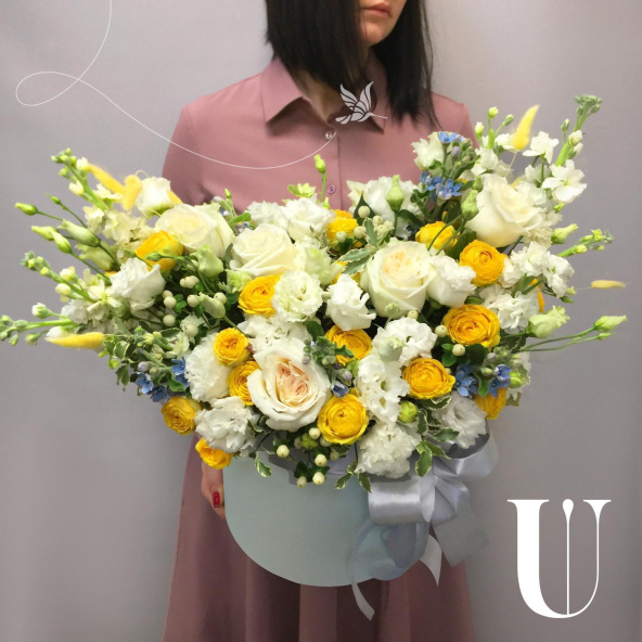 - Шляпная коробка маджестик, голубая (выс. 25 см, диам. 25 см) - 1 шт