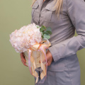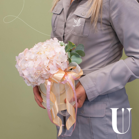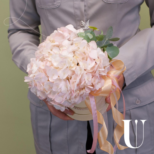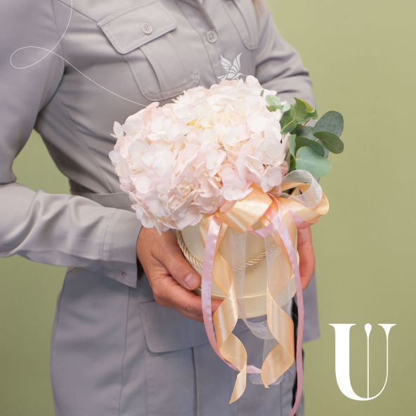 Белые орхидеи и розовые кустовые розы в шляпной коробке