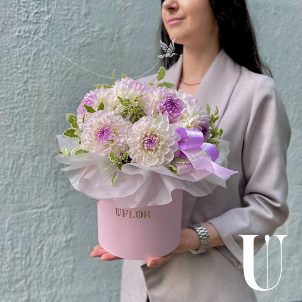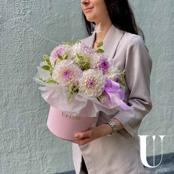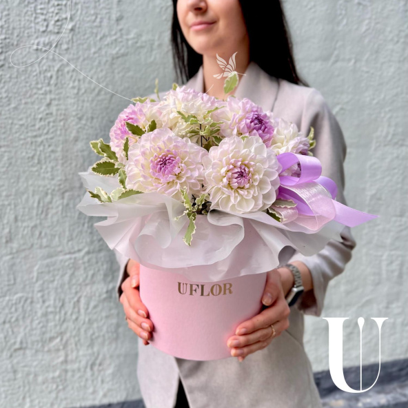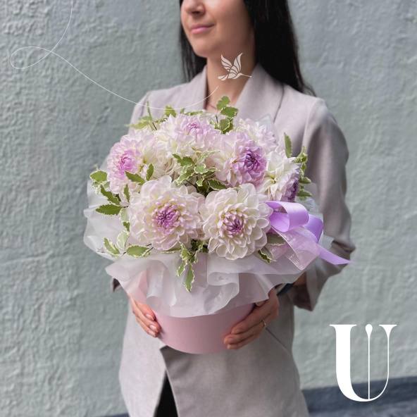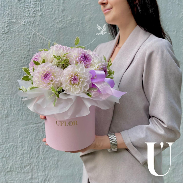 - Георгина Эвелин, бело-сиреневая - 9 шт