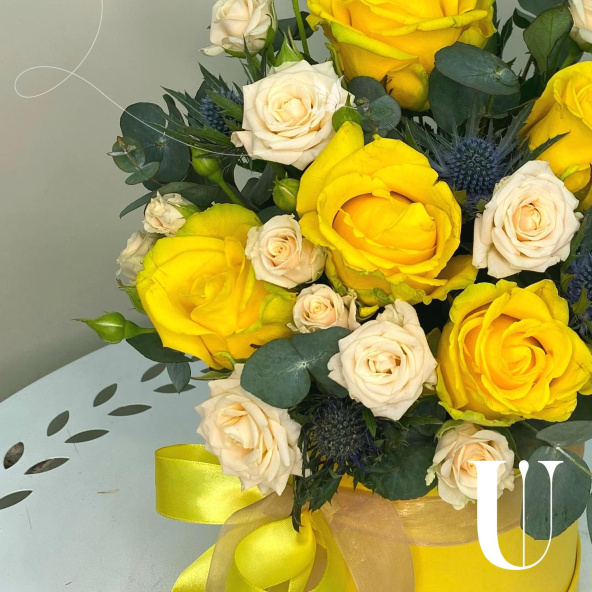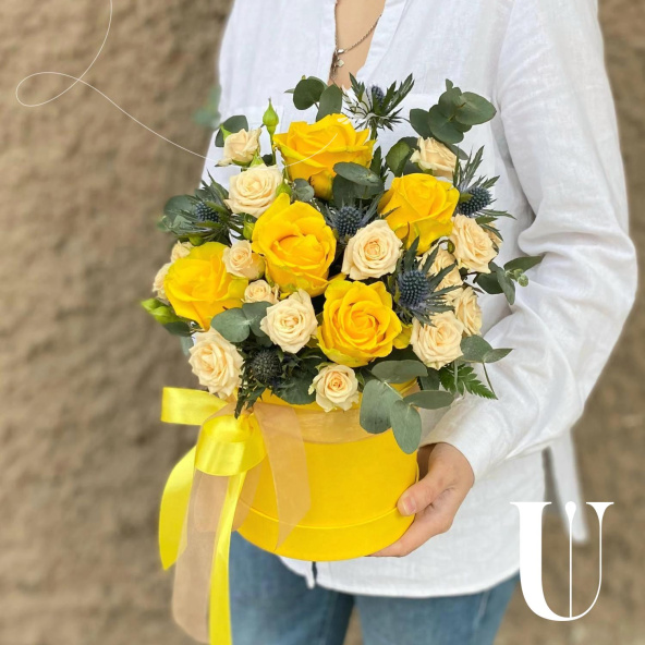 - Шляпная коробка эфалин, желтая (выс. 15 см, диам. 15 см) - 1 шт