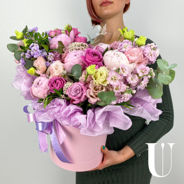 - Шляпная коробка нежно-розовая (выс. 25 см, диам. 20 см) - 1 шт