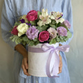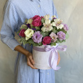 - Шляпная коробка бархатная, нежно-розовая (выс.16 см, диам.16 см) - 1 шт