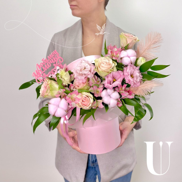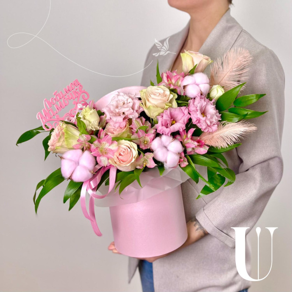- Шляпная коробка маджестик (U), светло-розовая (выс. 18 см, диам. 16 см) - 1 шт