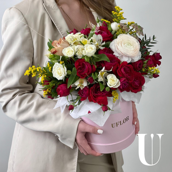 - Шляпная коробка маджестик (U), светло-розовая (выс. 18 см, диам. 16 см) - 1 шт