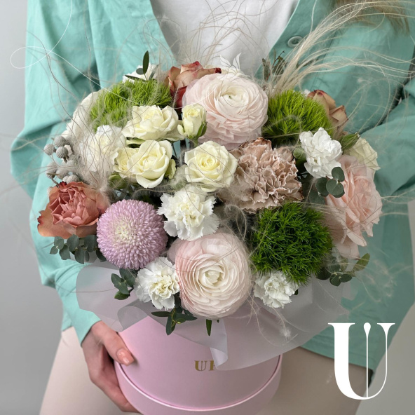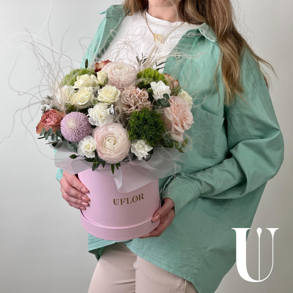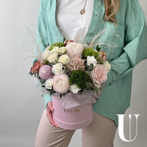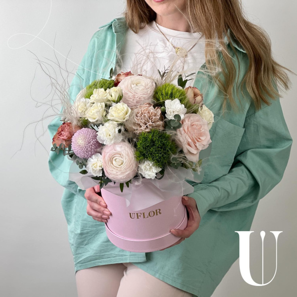- Шляпная коробка маджестик (U), светло-розовая (выс. 18 см, диам. 16 см) - 1 шт