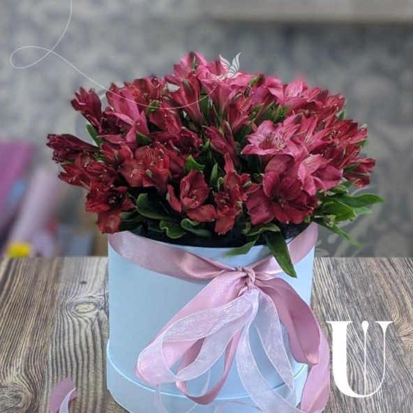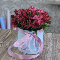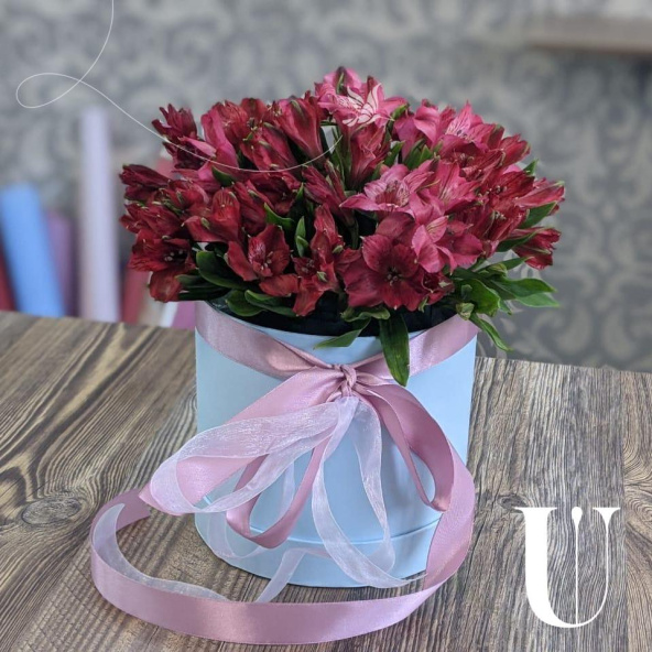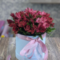 Композиция из альстромерий микс в розовой шляпной коробке