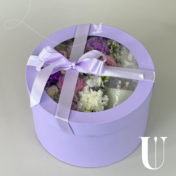 - Коробка шайба с окном (25*15см) Лавандовый - 1 шт