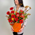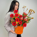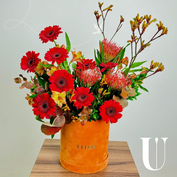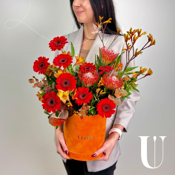 - Шляпная коробка бархатная, оранжевая (выс. 20 см, диам. 17 см) - 1 шт