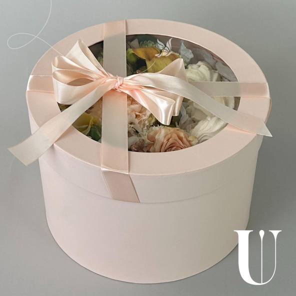 - Коробка шайба с окном (25*15см) Розовый - 1 шт