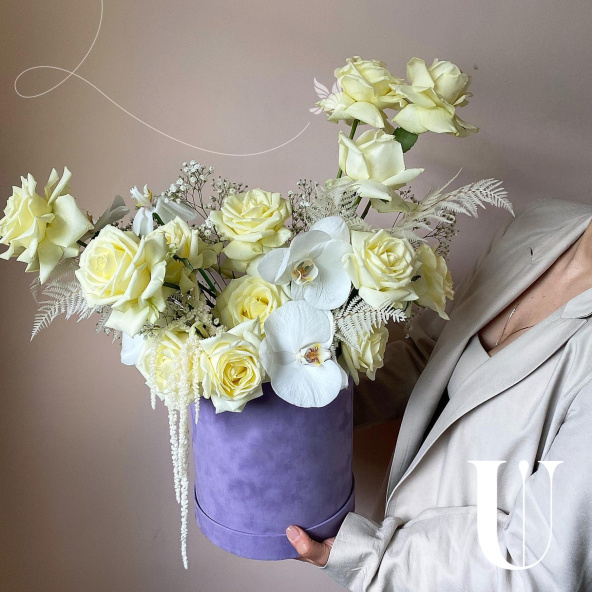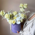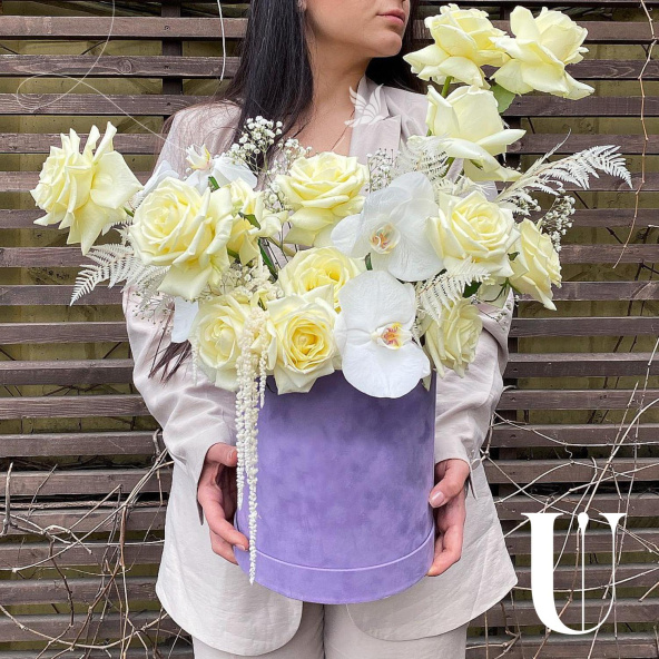 - Шляпная коробка бархатная, сиреневая (выс. 25 см, диам. 20 см) - 1 шт