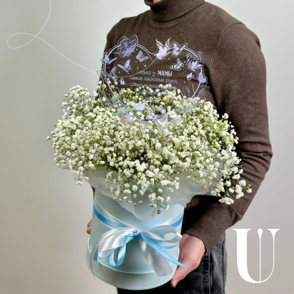 - Шляпная коробка маджестик (U), светло-голубая (выс. 18 см, диам. 16 см) - 1 шт