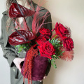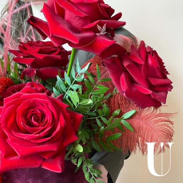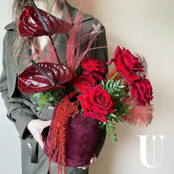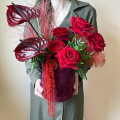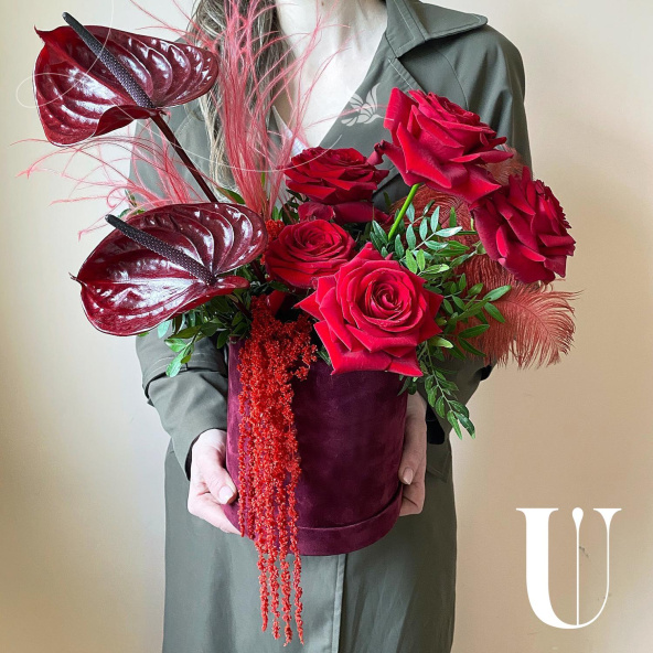 - Шляпная коробка бархатная, красная (выс. 23 см, диам. 20 см) - 1 шт