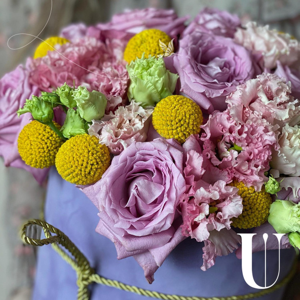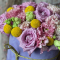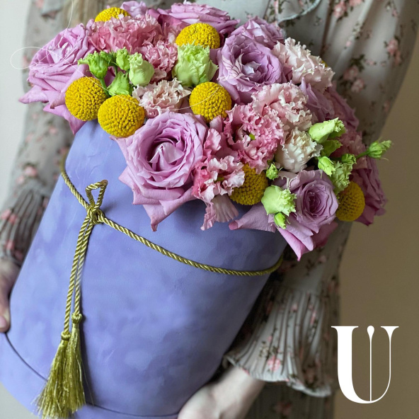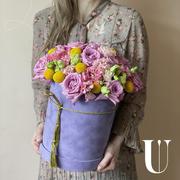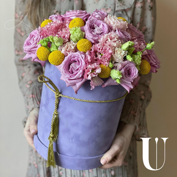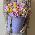 - Шляпная коробка бархатная, сиреневая (выс. 25 см, диам. 20 см) - 1 шт