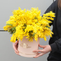 Кустовые пионовидные розы Бомбастик и розовые эустомы в шляпной коробке